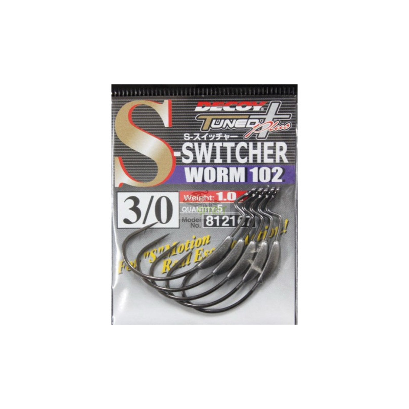 DECOY WORM 102 S-Switcher è un amo offset della serie TUNED PLUS. Si tratta di un amo di alta qualità con un gap di media ampiezza e piombatura sulla curva del gambo.